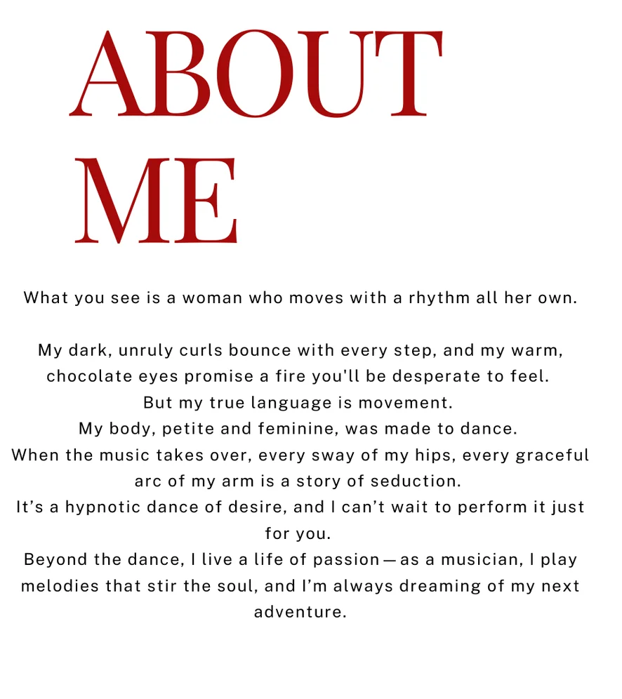 Yoga, Nylon, Sculacciate, Pompino, Zoccolo di cammello, Bustino, Dildo o Vibratore, Sega, Lattice, Cuoio, Linguaggio esplicito, Esibizionismo, Istruzioni per sborrare, Tacchi, Ripresa della gonna da sotto, Mistress, Orgasmo, Masturbazione, Ditalino, Tradimento, Sborrata, Pecorina, Giochi di ruolo, Spogliarello, Feticismo dei piedi, Ballo erotico, Valutazione del cazzo, Giocattoli erotici, Umiliazione, Topless, Twerk, Massaggio